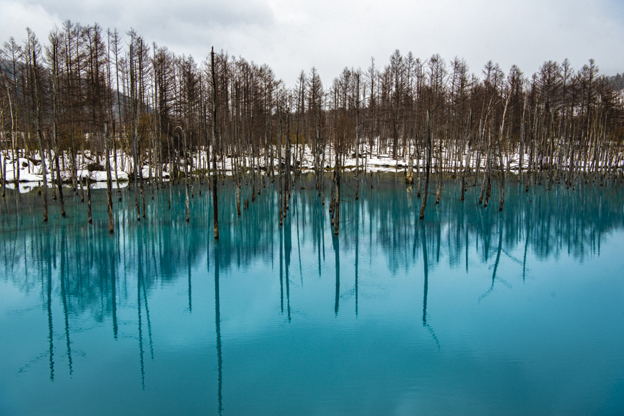 Hier op Hokkaido is het nog winter. Vanwege de meer noordelijke ligging komt begin mei pas de lente inzetten. Alle bomen waren dus nog kaal en werkelijk overal lag nog sneeuw! En dat terwijl het op sommige dagen boven de 20 graden was. In de winter valt hier zo’n dik pak sneeuw dat het een hele tijd duurt voor alles weg gesmolten is. Veel mensen komen hier in de winter ook naartoe voor de wintersport vanwege de fijne poedersneeuw. Een aantal wegen in sommige nationale parken waren nog afgesloten vanwege de sneeuw. We kwamen erachter dat we net een week te vroeg op Hokkaido waren, want komende week gaan de wegen weer open! We hebben daarom helaas een paar plaatsen die op ons lijstje stonden niet kunnen bezoeken. Maar de meeste dingen gelukkig wel.