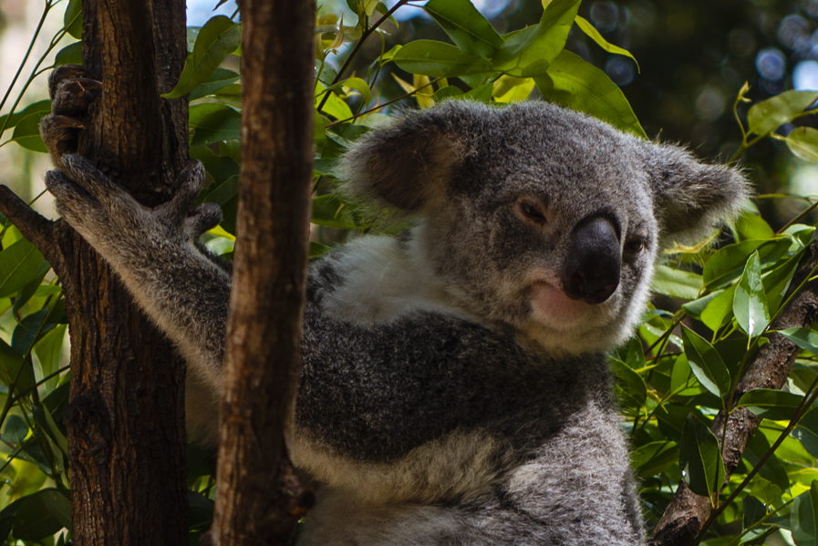 We kregen veel tips van ze over wat er allemaal te doen is in de omgeving, en omdat we nog geen kangoeroes gezien hadden behalve een paar dode langs de weg (en het kan toch niet zo zijn dat we in Australië zijn en geen levende kangoeroes zien) besloten we naar het wildlife sanctuary (soort van dierenpark) in Currumbin te gaan. Hier had je een grote weide met kangoeroes waar je gewoon bij kon. Je kon er als het ware picknicken met de kangoeroes. Echt heel grappig om de kangoeroes te zien huppen! Ook zagen we de Tasmanian devils die alleen op Tasmanië leven. Wow, dat zijn lelijke beesten! En we zagen nog veel meer beesten en vogels waarvan de meesten ook in Australië in het wild leven. Ook heel veel leuke koala’s hier, van de koala’s zijn we echt gaan houden. We hadden ook mazzel, je kon hier namelijk, lekker commercieel, met een koala op de foto. Precies toen we langs de rij liepen kwamen 3 Chinese meisjes op ons af die een ticket hadden en er vanaf wilden. Nou, wij wilden wel! Koala’s hebben hun armen automatisch al in knuffelpositie dus zodra we ze in de handen kregen gaven ze ons een dikke knuffel. Zelfs Lisanne (niet ’s werelds grootste dierenliefhebber, laat staan dierenknuffelaar) smolt hier helemaal bij weg.